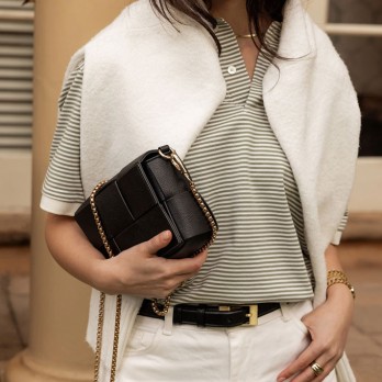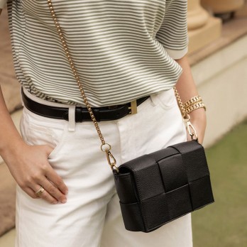 | • Interior : 1 zip pocket • Closure : magnetic clasp • Detachable and adjustable leatherette strap • Detachable 47” Chain Strap |