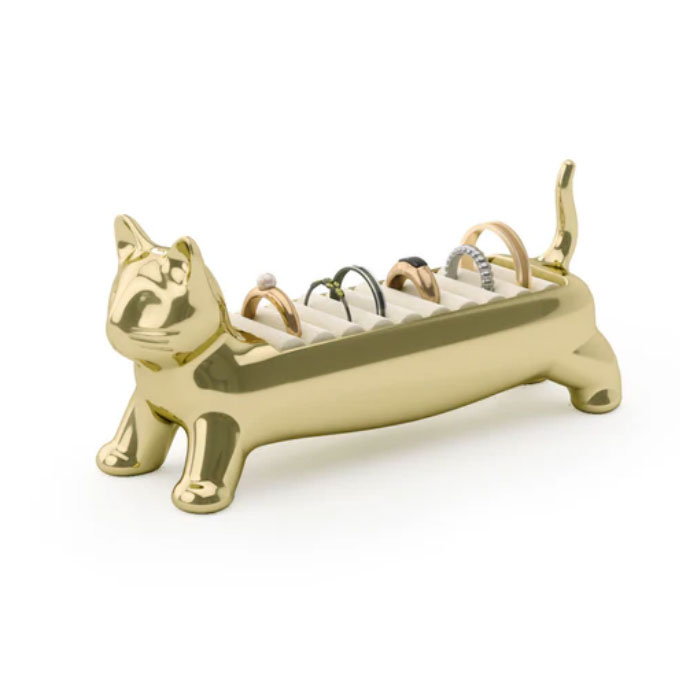 This holder features enough room to store up to 9 rings of various sizes.