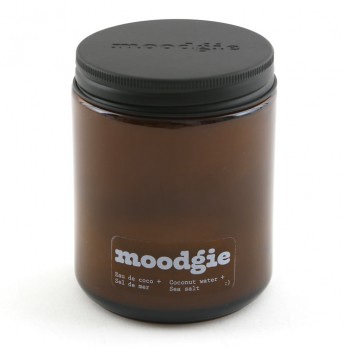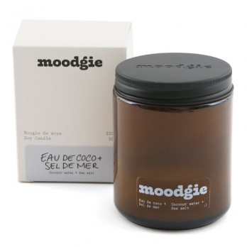 Notes d'eau de coco, sel de mer, bois flotté, roses, géranium et citron.